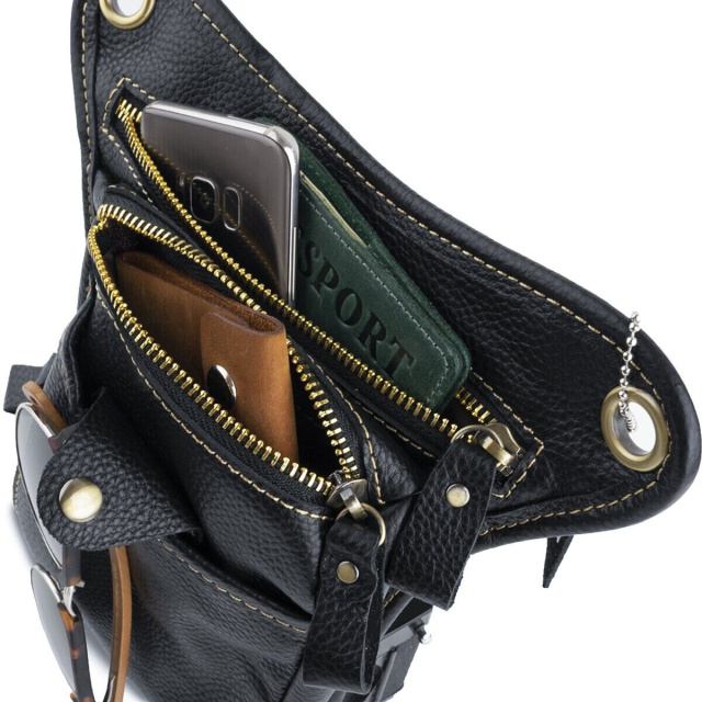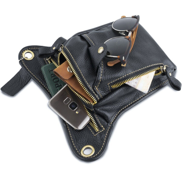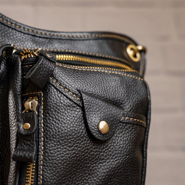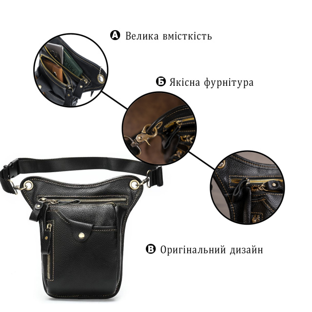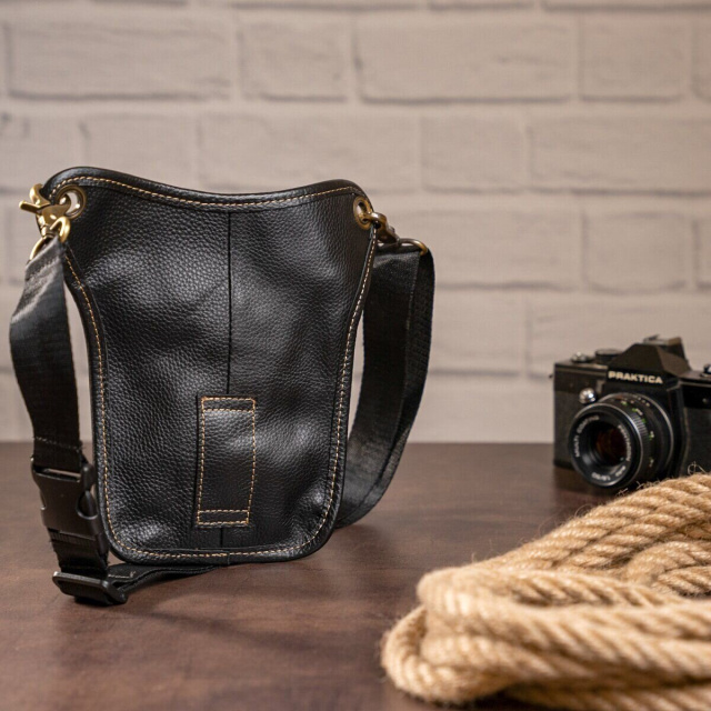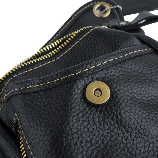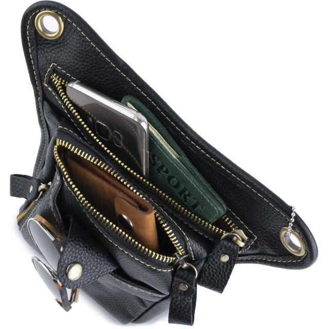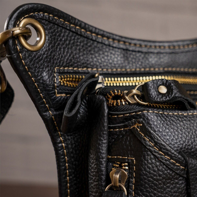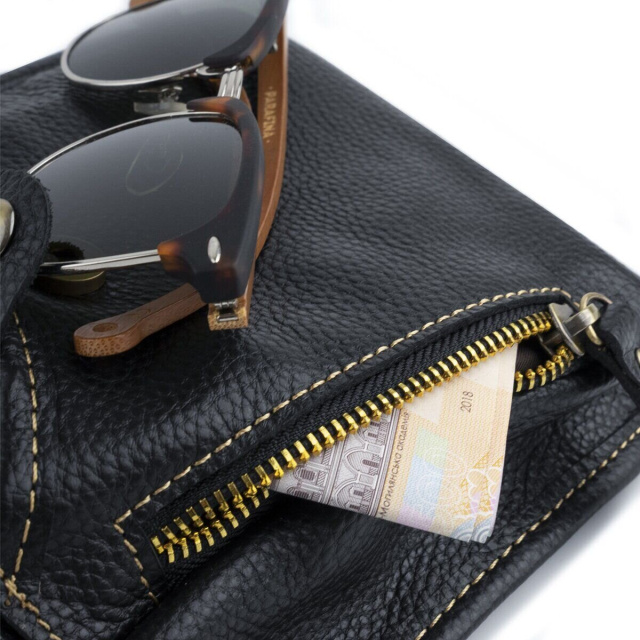 Сумка на пояс с оригинальным дизайном. Поясные сумки пользуются огромной популярностью среди мужчин. Очень удобно иметь такую сумку. Она очень универсальная и удобная в носке. Все самое важное будет у вас всегда под рукой. А украсть сумку с пояса будет намного сложнее. Поэтому с такой сумкой вы бедете чувствовать себя безопаснее. Также, с ней удобно ездить в транспорте или брать ее на дальние поездки. Хороший вариант – малогабаритный, но при этом достаточно вместительный. Вам будет легко с такой сумки достать документы или деньги при необходимости. Модель прошита светлой строчкой и дополнена фурнитурой золотистого цвета. Будет хорошо смотреться в качестве подарка для близкого человека.