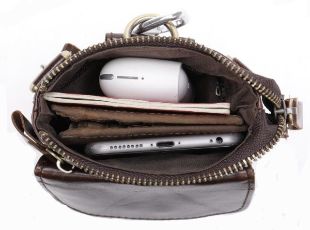Компактная мужская сумка на каждый день. Сумка приятная на ощупь и выглядит по винтажному. Аксессуар имеет потертости, что придает ему эффекта старины. Модель дополнена крепкой золотистой фурнитурой в дизайн аксессуара. В комплекте идет съемный текстильный ремешок коричневого цвета, а также карабин для вашего удобства или вы можете прицепить на него ключи. Внутри коричневая подкладка из качественного текстиля. Сумка проносится не один год и будет идеальным подарком по любому поводу.
