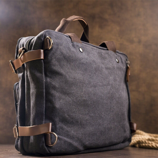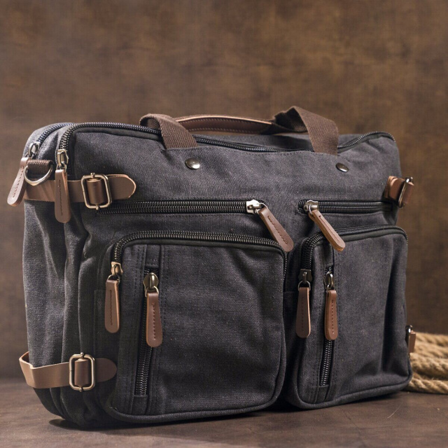 Сумка-трансофрмер текстильная большая Vintage 20078 Черная