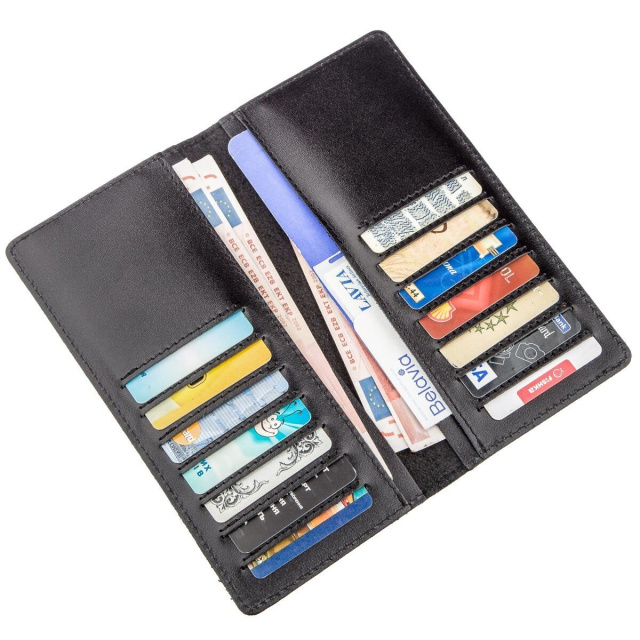 Тоненький кожаный бумажник из натуральной кожи. На лицевой стороне тисненный логотип бренда. Бумажник подойдет для вас, если вы не любите носить с собой монеты, и отдаете предпочтение карточкам. Модель очень вместительная по количеству карт. Дизайн модели строгий и в классическом стиле. Выдержанный внешний вид бумажника подчеркнет ваш статус. По краям модель прошита ровной строчкой. Изделие прекрасно носится и очень практичное.