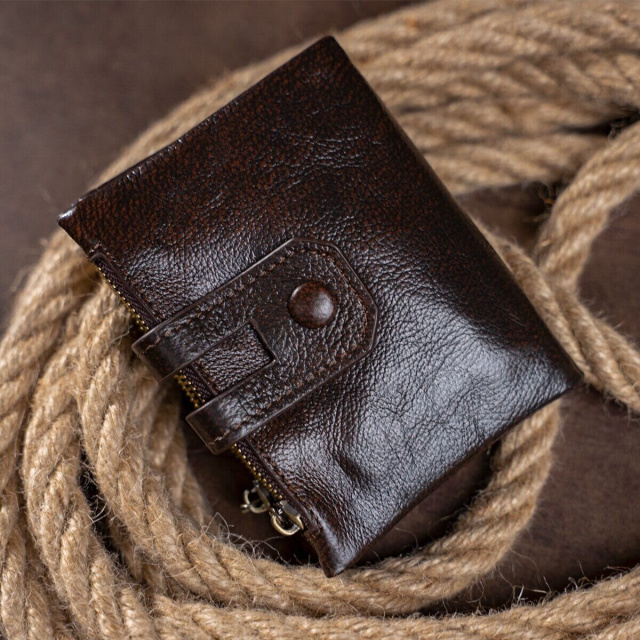 Великолепный кошелек кофейного цвета. Главным отличием данной модели является функциональность и при этом компактность. Цвет фурнитуры: латунь. Кошелек изготовлен из натуральной высококачественной кожи.
