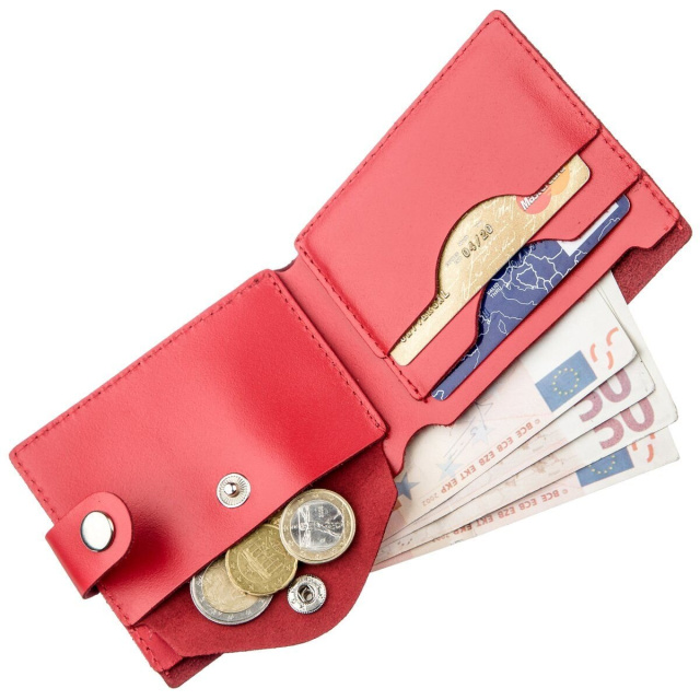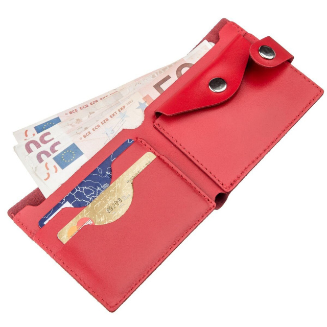 Тончайший и компактный, яркий женский кошелек. Аксессуар идеален для тех, кто любит минимализм и классику. Яркий красный цвет подчеркнет вашу индивидуальность. Изделие выполнено из плотной кожи и прошито прочной нитью. Мы уверены, что аксессуар проносится далеко не один год. Закрывается модель на кожаный хлястик с кнопкой. Такой кошелек, однозначно, порадует любую девушку.