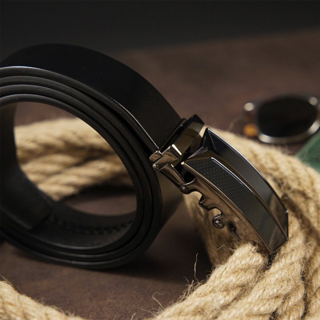 Качественный ремешок из натуральной кожи и цельного полотна. Модель дополнена оригинальной пряжкой напоминающей логотип Мерседес в сочетании затемненного металла и черного цвета. Пряжка придает ремешку особенного шарма и добавляет индивидуальности. Ремень подойдет под джинсы и брюки. Пряжка автомат очень удобная и долгое время не выходит из строя. Если вы в поисках качественного ремня - рекомендуем вам данную модель. А также вы можете приобрести ремешок на подарок мужчине. Уверены, что изделие не оставит его равнодушным.