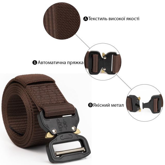 Рекомендуем вам текстильный ремешок, если вы хотите сэкономить ваш бюджет и при этом получить достойное качество. Коричневый ремень очень практичный. Изделие имеет автоматическую пряжку черного цвета. Производство - фабричный Китай. Ремень ничем не уступает более дорогим моделям. Изделие станет идеальным подарком для любого мужчины.