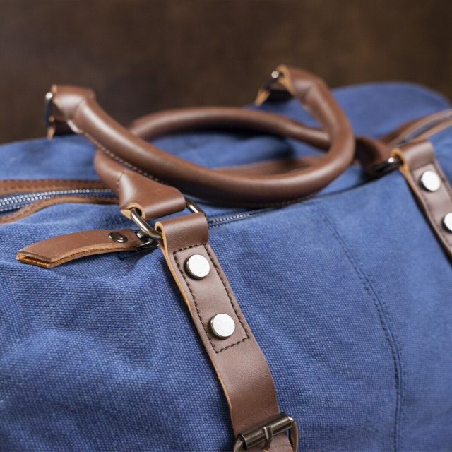 Изделие выполнено из текстиля синего цвета. Материал легче кожаных аналогов, неприхотлив в уходе и хорошо подходит для активного использования. Большой формат делает сумку удобной для вещей в дорогу, спортивной формы и других необходимых принадлежностей.