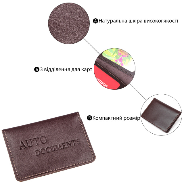 Бюджетная и очень качественная обложка из натуральной кожи. Модель очень мягкая и приятная на ощупь. Качество аксессуара на высшем уровне. Внутри – 3 слота для ваших документов. Вы можете поместить в них паспорт нового образца, водительские права и техпаспорт на авто или вашу кредитную карточку. В таком кейсе ваши документы не будут мяться или затираться. Обложка будет идеальным подарком для ваших близких.