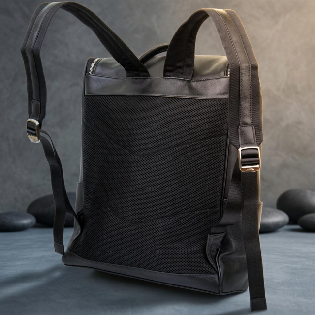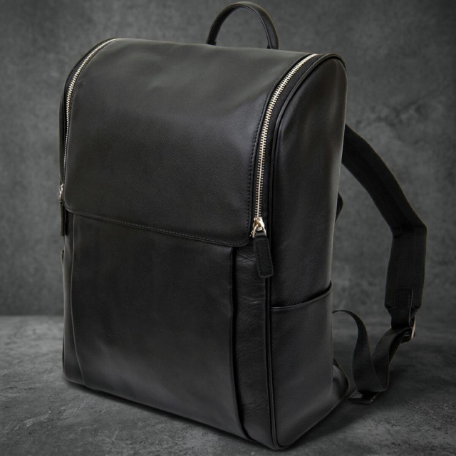 Рюкзак выполнен из натуральной высококачественной кожи с зернистой фактурой. Материал приятный на ощупь, хорошо держит форму и подходит для активного ежедневного использования. Черный цвет делает модель универсальной и легко сочетаемой с деловым, повседневным и городским стилем. Фурнитура цвета темного серебра гармонично дополняет дизайн, а прочная текстильная подкладка повышает практичность в использовании.