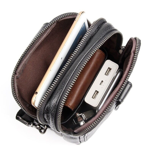 Компактная кожаная мужская сумка из натуральной кожи через плечо. Небольшой размер и легкий вес сумки подкупают клиентов. Модель выполнена в коже флотар, которая совсем не прихотлива в уходе. По краям аксессуар прошит ровной строчкой. Сумка станет прекрасным подарком для любого мужчины.
