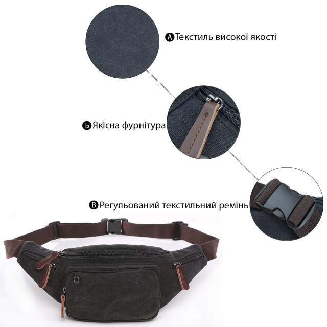 Молодежная сумка из прочного полиэстера. Изделие подойдет как для работы, так и в дорогу. Сумка легко стирается и совсем не прихотлива в уходе. Бананка стала просто находкой для путешественников или водителей. С такой сумкой у вас все личные вещи под рукой и перед глазами – а значит в безопасности. Модель очень практичная и универсальная. Изделие станет прекрасным подарком для любого мужчины.