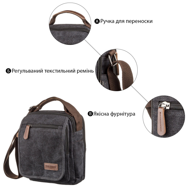 Находитесь в поисках сумки на работу или учебу Она перед вами. Качественная и функциональная мужская сумка из плотной ткани. Внутри – крепкая текстильная подкладка коричневого цвета. Модель на два отделения очень универсальна и более вместительная. Если вам нужна сумка небольшого размера на каждый день – рекомендуем данную модель. В нашем интернет-магазине она доступна в нескольких цветах.