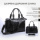 Модель закрывается на молнию, что обеспечивает быстрый доступ к содержимому и надежное хранение вещей. На передней панели расположены два кармана на молниях декоративного типа, а на задней панели предусмотрен небольшой карман на молнии для вещей, которые должны быть под рукой.