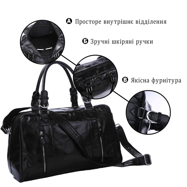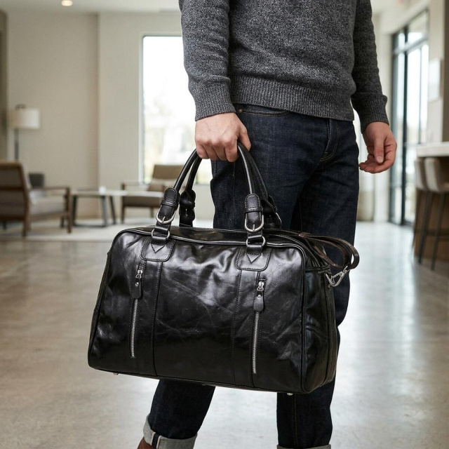 Благодаря продуманной конструкции сумка хорошо подходит для одежды, личных вещей, спортивных принадлежностей и всего необходимого для короткой поездки. Это удачный выбор для тех, кто ищет стильную, практичную и вместительную кожаную дорожную сумку на каждый день и для дороги.