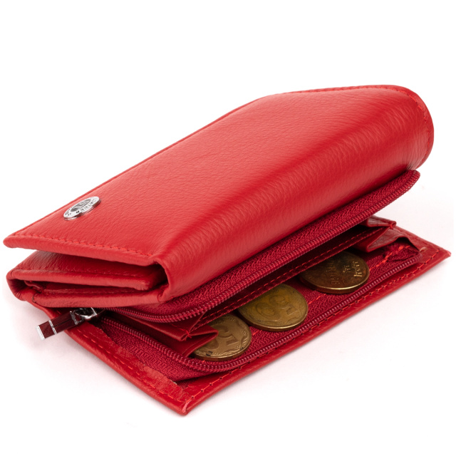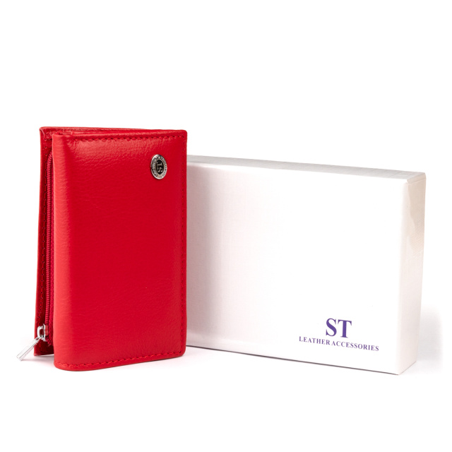 Изделие выполнено из натуральной кожи в насыщенном красном цвете. Материал приятный на ощупь, отличается практичностью и хорошо подходит для ежедневного использования. Гладкая кожа не требует сложного ухода, а внутри аксессуар дополнен плотным текстилем.