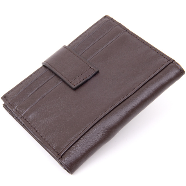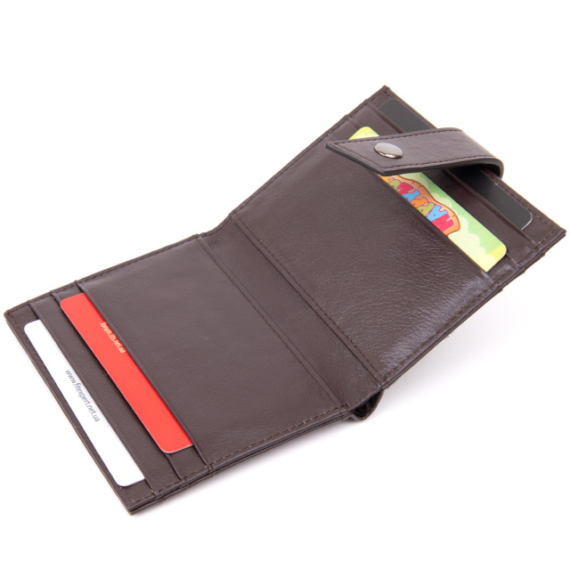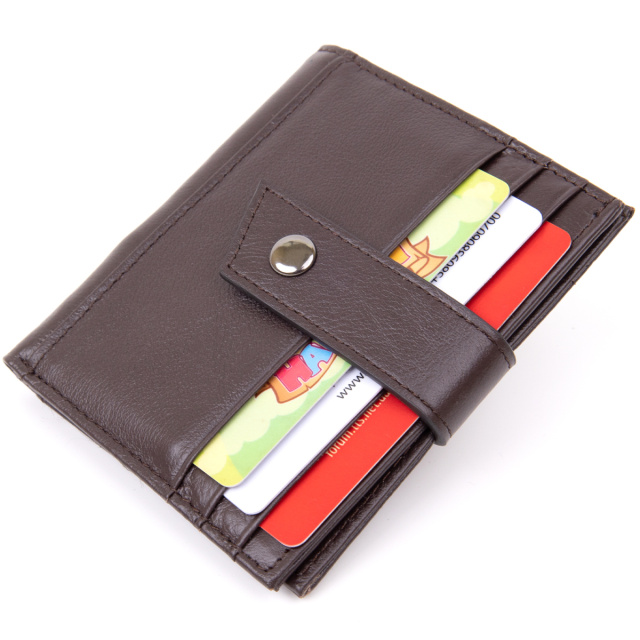 Тонкий картхолдер минимального размера. Изделие выполнено из натуральной кожи высокого качества. Закрывается портмоне на хлястик с кнопкой. Модель имеет 12 ячеек под кредитки. Аксессуар с легкостью поместится в карман брюк или маленькую сумку. В комплекте идет пылезащитный чехол.