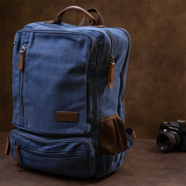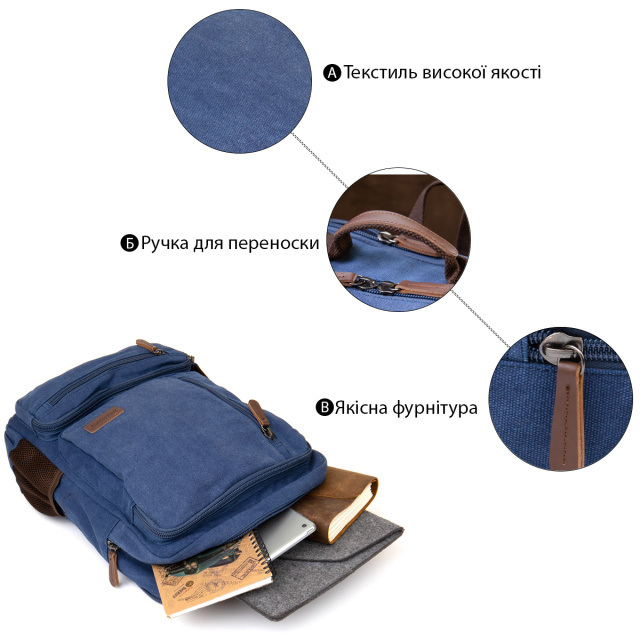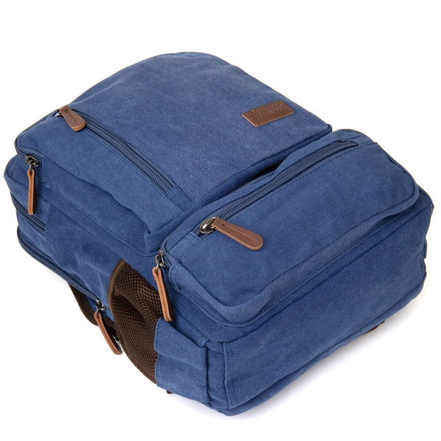 Большой рюкзак на два отделения текстильный синего цвета. Рюкзак очень вместительный. Изделие имеет очень практичный функционал. Рюкзак подойдет для путешествий и командировок. Несмотря на свой большой размер рюкзак не тяжелый. Закрывается рюкзак на молнии. Внутри - качественная подкладка. В рюкзак помещается ноутбук. Текстильный рюкзак - бюджетное решение для вашего комфорта.