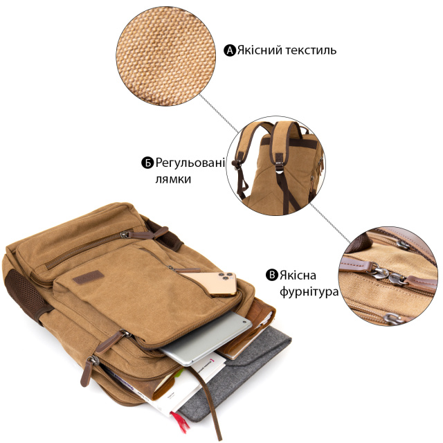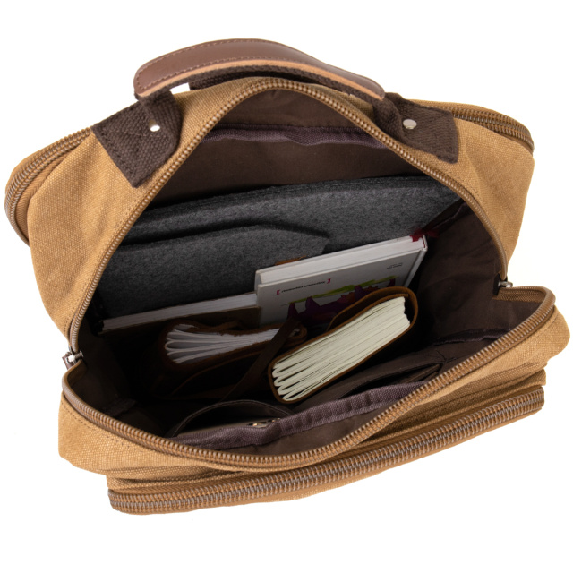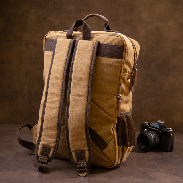 Большой рюкзак на два отделения текстильный песочного не маркого цвета. Рюкзак очень вместительный. Изделие имеет очень практичный функционал. Рюкзак станет идеальной альтернативой дорожной сумке и ваши руки будут свободны. Рюкзак подойдет для путешествий и командировок. Несмотря на свой большой размер рюкзак не тяжелый. Закрывается рюкзак на молнии. Внутри - качественная подкладка. В рюкзак помещается ноутбук. Производство - фабричный Китай. Благодаря качественной фурнитуре и материалам исполнения рюкзак прослужит вам сравнительно долго. Текстильный рюкзак - бюджетное решение для вашего комфорта. На нашем сайте аксессуар доступен в разных цветах.