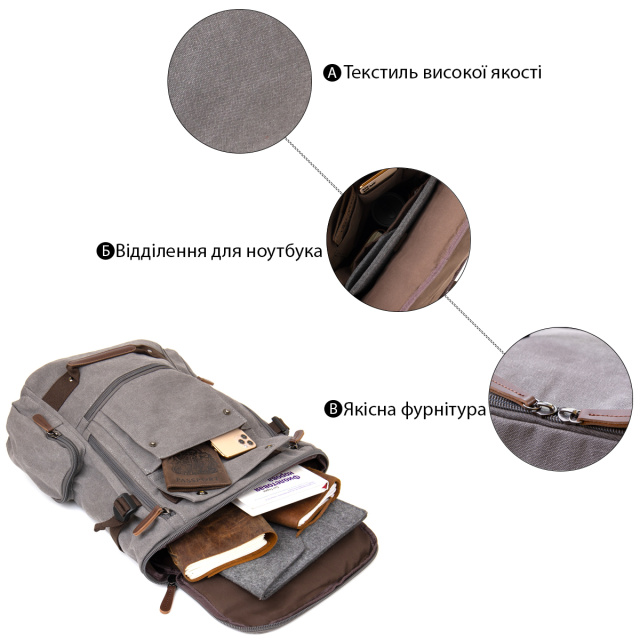 UA MarketКиївJANAТовари та послугиРюкзакиКожаные рюкзакиРюкзак текстильный дорожный унисекс с ручками Vintage 20662 Серый