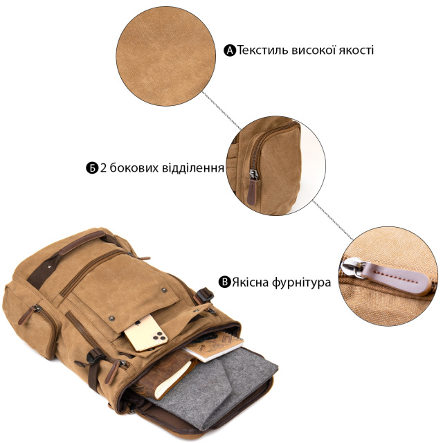 UA MarketКиївJANAТовари та послугиРюкзакиКожаные рюкзакиРюкзак текстильный дорожный унисекс с ручками Vintage 20664 Песочный