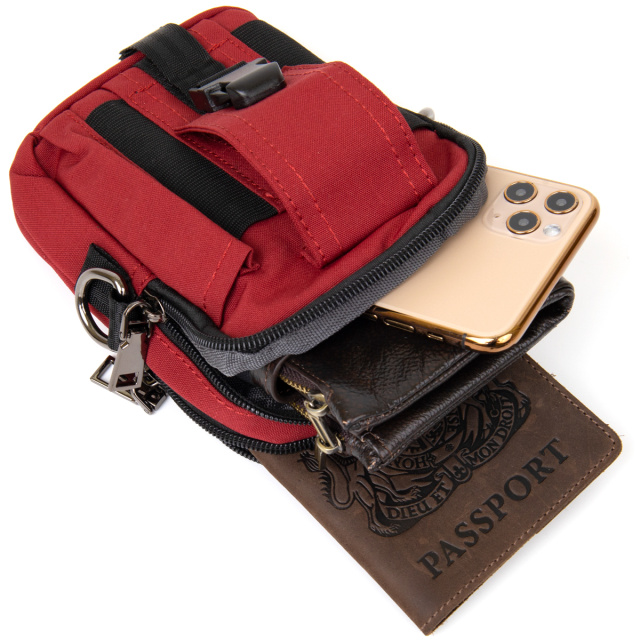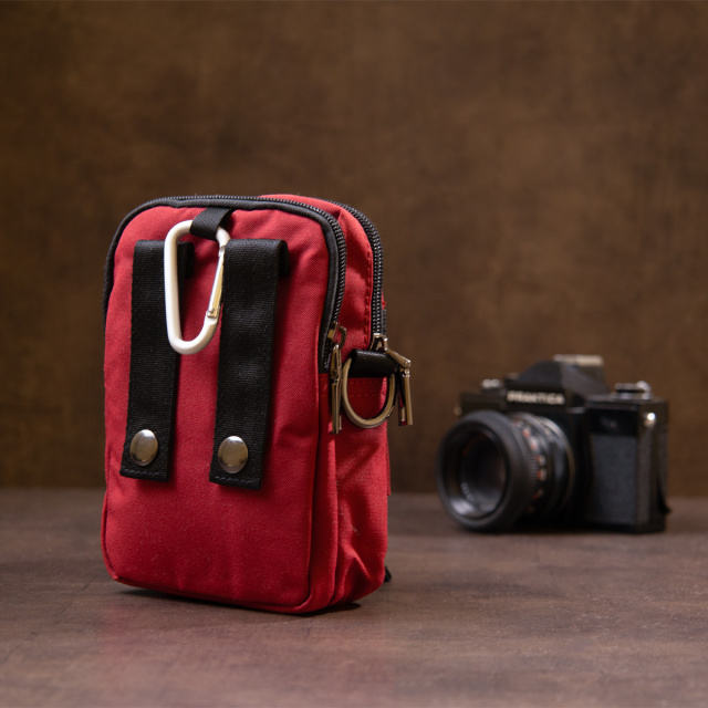 Маленькая сумка на ремень, которая заменит вам барсетку в красном цвете с малиновым оттенком. Сумка из нейлона очень легкая и практичная. Изделие имеет необходимый функционал. Сумку можно подцепить на лямки ремня с помощью карабина. Маленькая текстильная сумка - идеальный вариант на лето. Производство - фабричный Китай высокого качества. Аксессуар дополнен качественной фурнитурой и имеет бюджетную стоимость. Сумочка будет идеальным подарком для ваших близких.