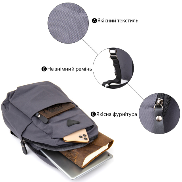 Сумка через плечо из плотного нейлона. Изделие имеет практичный функционал и перестегивается на удобное вам плечо. Внутри - плотная серая подкладка. Аксессуар имеет практичный функционал. Сумка через плечо очень популярный и практичный аксессуар. Изделие компактного размера и подойдет в качестве летней повседневной сумки. Текстильная сумка отличная и доступная альтернатива сумкам из кожи.