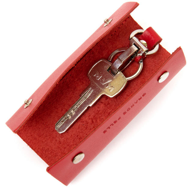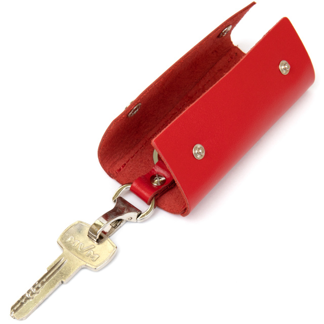 Материал: натуральная кожа; Размеры (ШхВ, см): 11,3х4,5х2; Цвет: красный; Страна производитель: Украина. Яркая ключница от украинского бренда на кнопках. Модель из натуральной кожи. На лицевой стороне аксессуара тиснение в виде надписи бренда. Внутри ключницы кольцо и карабин для ключей. Аксессуар очень компактный и с легкостью поместится в карман или маленькую сумочку. С такой кожаной ключницей ваши карманы будут целыми, а ключи в одном надежном месте. Рекомендуем данную модель в качестве подарка себе или своим близким и друзьям.