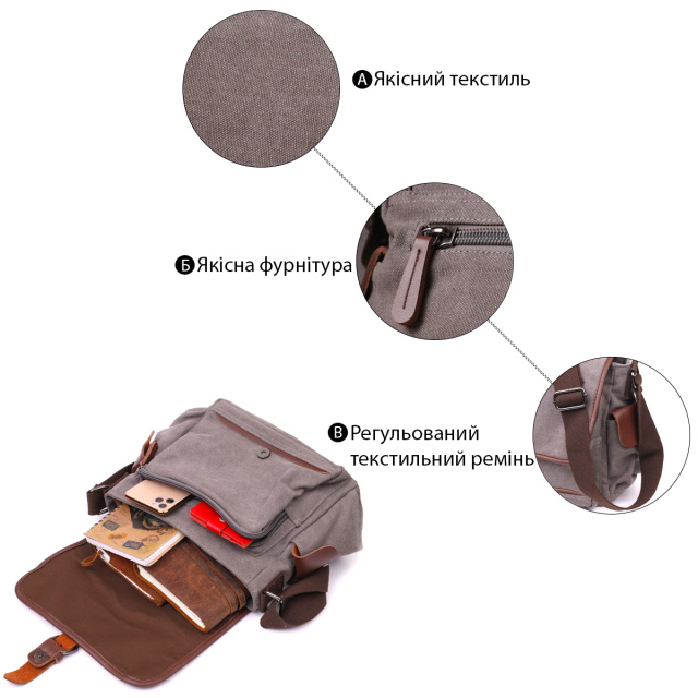 UA MarketКиївJANAВсе товарыТовари та послугиСумки мужскиеМужские сумкиКожаные мужские сумкиПрактичная горизонтальная мужская сумка из текстиля 21248 Vintage Серая