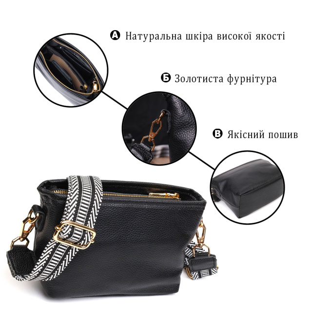 Женская удобная сумка из натуральной мягкой кожи высокого качества. Изделие очень удобное, можно носить на плече и через плечо. Модель дополнена фурнитурой цвета желтого золота. Аксессуар имеет одно основное отделение на молнии в котором три кармашки - два на молнии и один открытого типа. Закрывается модель на молнию. Идеальный вариант для любой девушки, на любой сезон.