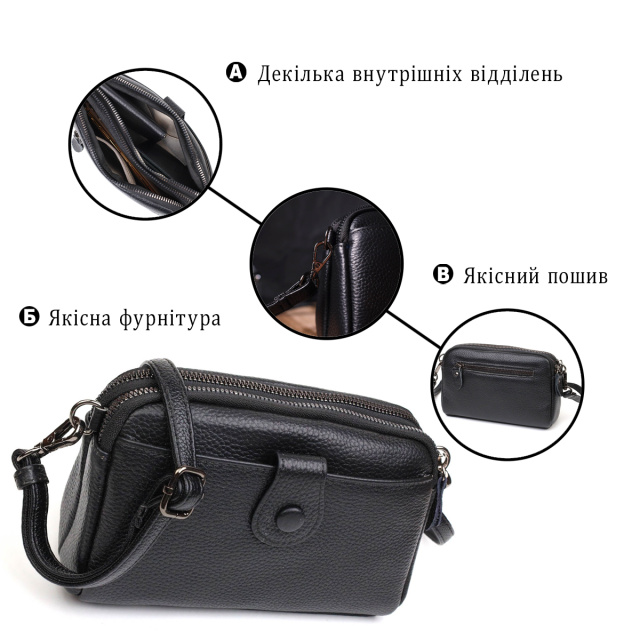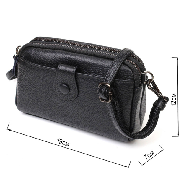 Стильная небольшая сумка-клатч из натуральной мягкой кожи высокого качества. Изделие очень удобное, можно носить на плече, через плечо, под рукой и на кисти. Модель дополнена фурнитурой цвета темного серебра. Аксессуар имеет два основных отделения на молниях, в которых два кармашки - на молнии и один открытого типа, также снаружи находятся два кармана. В комплекте к сумке идет съемный плечевой ремень и съемный кистевой ремень. Закрывается модель на молнию.