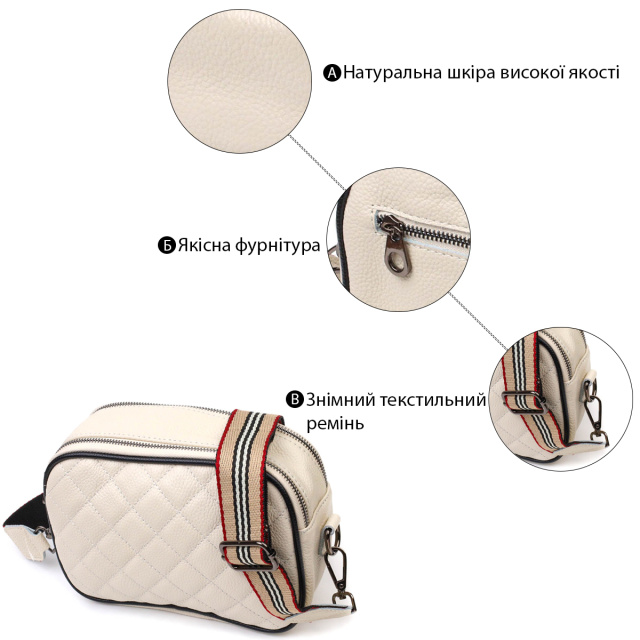 Женская кожаная сумка кросс боди для города и повседневного использования Vintage 22117 Белая