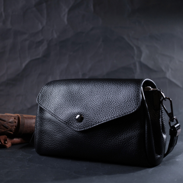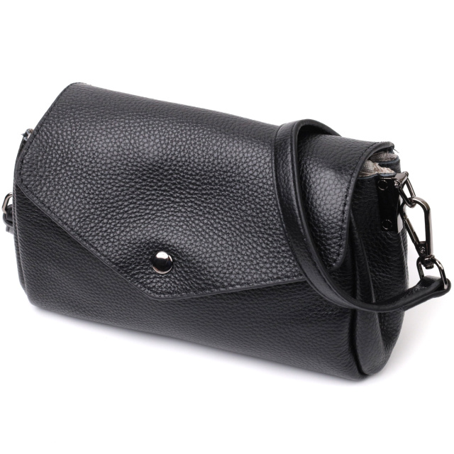 Компактная женская сумка из мягкой добротной кожи, которая отлично носится и не теряет свой первоначальный вид. Аксессуар состоит из одного основного отделения в котором внутри два кармана на молниях. Носить сумку можно в руках, на плече и через плечо, для этого имеется кожаный съемный ремень. В изделии использована качественная фурнитура цвета темного серебра. Универсальный вариант сумки как на вечер так и в качестве сумочки на каждый день.