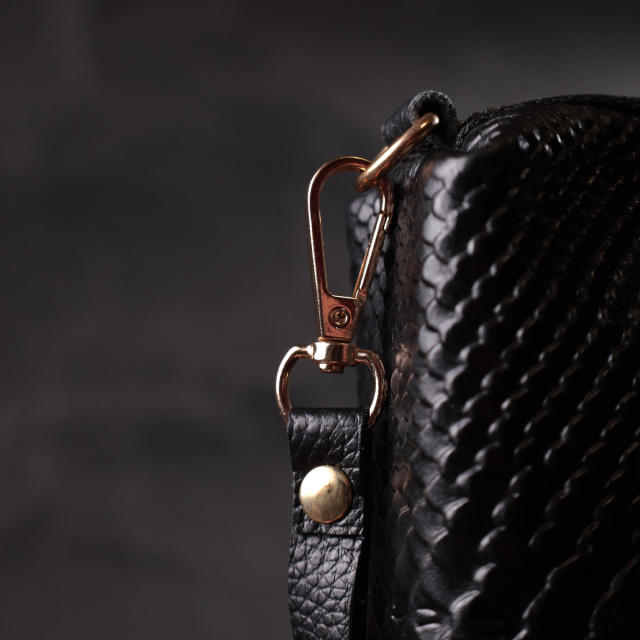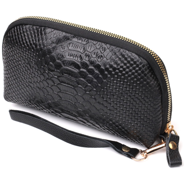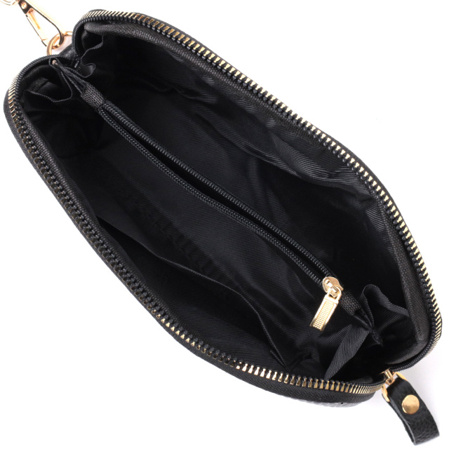Удобная женская барсетка, которая занимает мало места и при этом и вмещает в себя все необходимое для выхода из дома. Аксессуар состоит из одного отделения, что закрывается на молнию, внутри которого находится карман на молнии и карман открытого типа. Носить сумку можно в руке и на запястье. В аксессуаре использована качественная фурнитура цвета желтого золота.
