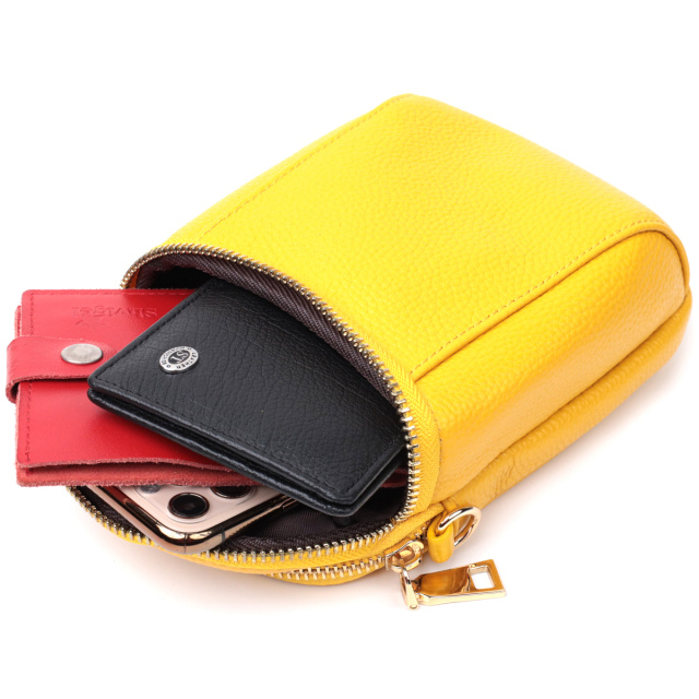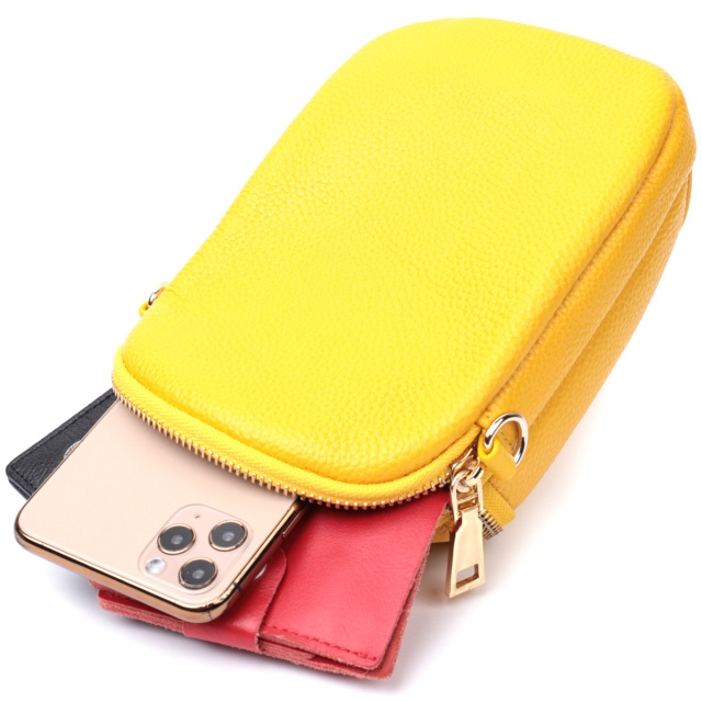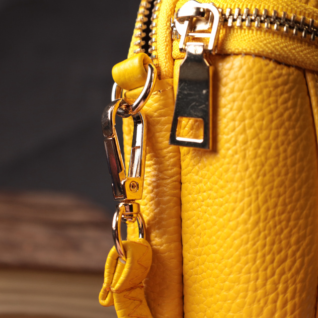 Яркая небольшая женская сумка удлиненного формата. Изделие пошито из качественной натуральной кожи, которая долго носится и не теряет свой первоначальный вид. Аксессуар состоит из двух основных отделений. Носить сумку можно на плече и через плечо, для этого имеется кожаный съемный ремень. В изделии использована качественная фурнитура цвета желтого золота.