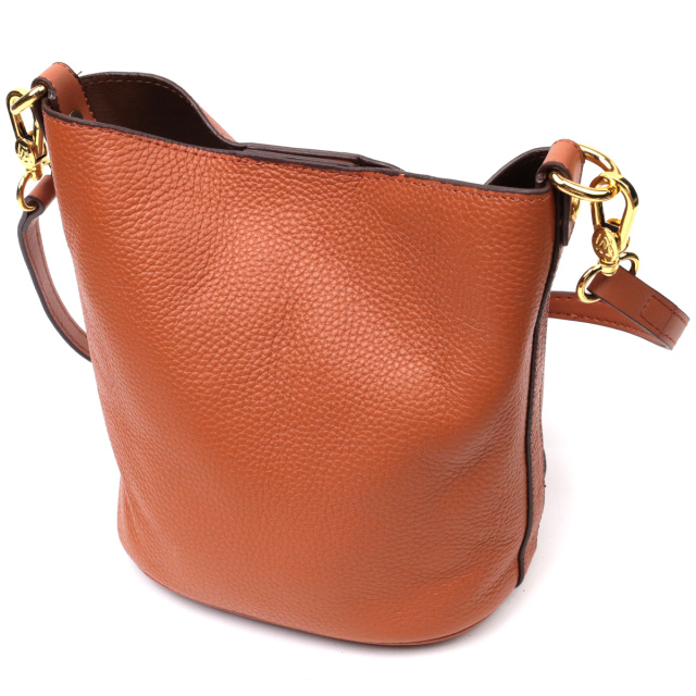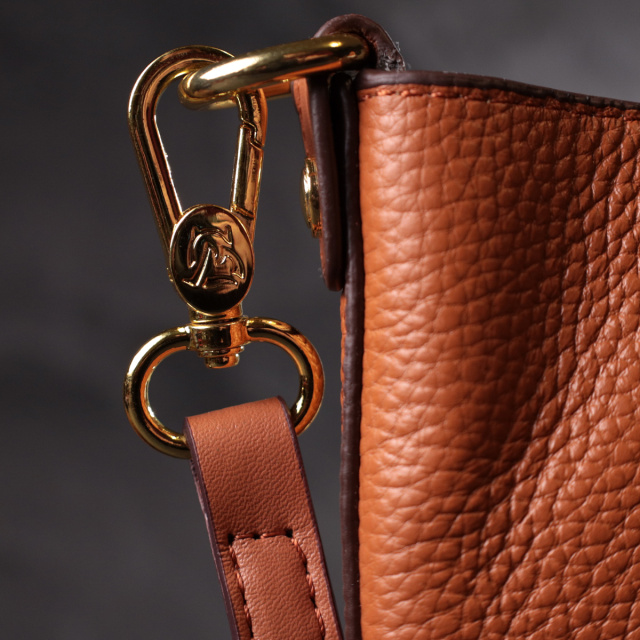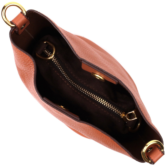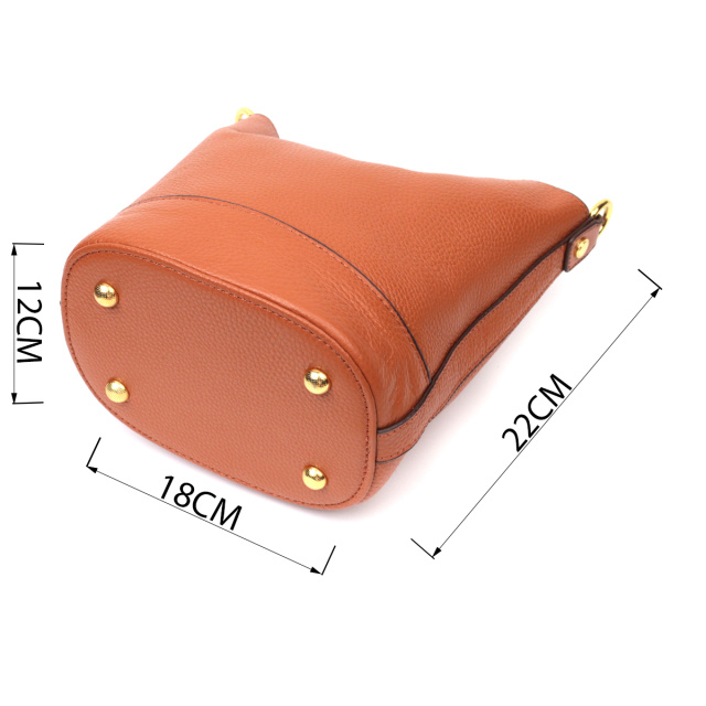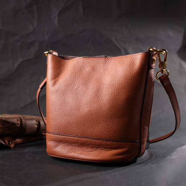 Качественная женская сумка с твердым дном, без подкладки и с косметичкой внутри. Изделие пошито из качественной натуральной кожи, которая долго носится и не теряет свой первоначальный вид. Аксессуар состоит из одного отделения в котором пристегивается косметичка, что закрывается на молнию. Носить сумку можно на плече и через плечо, для этого имеется кожаный съемный ремень. В изделии использована качественная фурнитура цвета желтого золота. Универсальный вариант сумки как на вечер так и в качестве сумочки на каждый день.