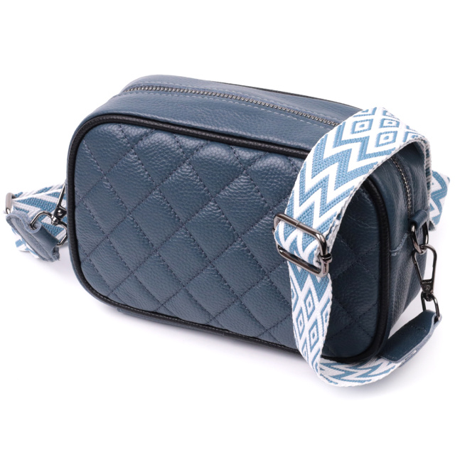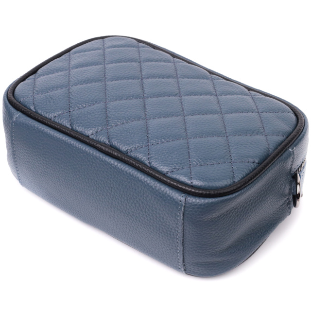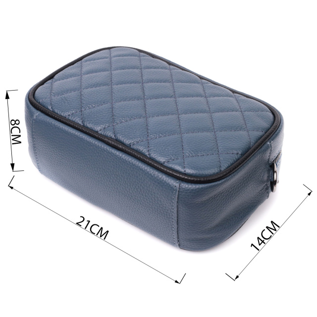 Женская стеганная ромбами на лицевой стороне сумка. Изделие пошито из качественной натуральной кожи, которая долго носится и не теряет свой первоначальный вид. Аксессуар состоит из одного основного отделения внутри которого расположен карман открытого типа и карман на молнии, также снаружи расположен карман на молнии, на тыльной стороне . Носить сумку можно в руке как клатч, на плече и через плечо, для этого имеется текстильный съемный ремень. В изделии использована качественная фурнитура цвета темного серебра. Универсальный вариант сумки как на вечер так и в качестве сумочки на каждый день.