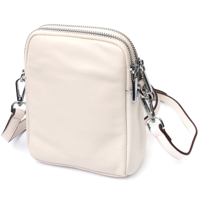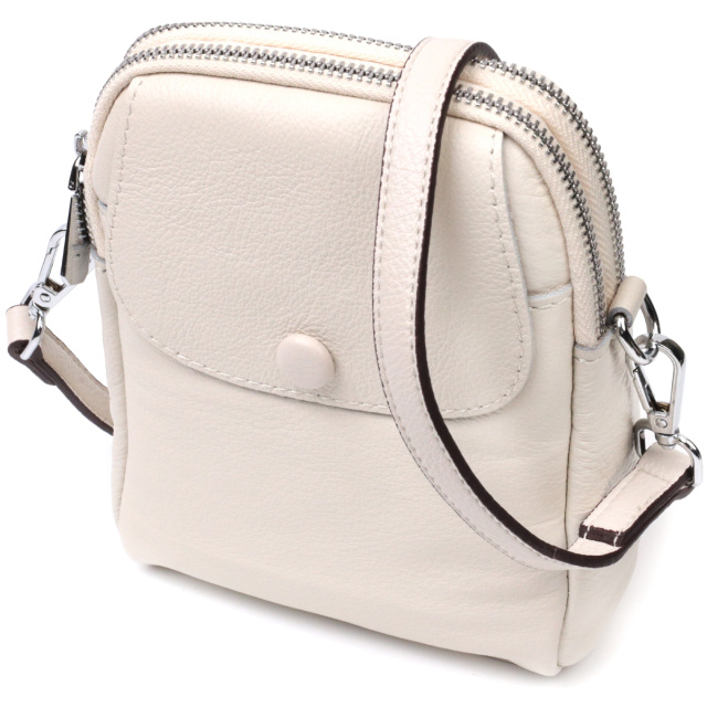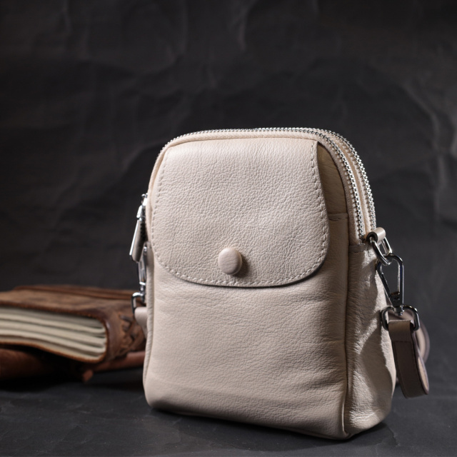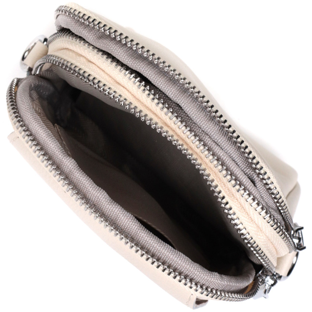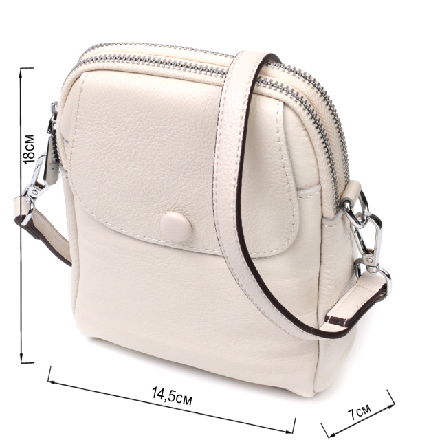 Интересная сумка трапециевидной формы для стильных и независимых женщин. Изделие пошито из качественной натуральной мягкой кожи, которая долго носится и не теряет свой первоначальный вид. На лицевой стороне расположен накладной карман, что закрывается клапаном на магнит. Аксессуар состоит из двух отделений, что закрываются на молнии, внутри которых находится потайной карман на молнии и карман открытого типа. Носить сумку можно на плече и через плечо, для этого имеется кожаный съемный ремень. В изделии использована качественная фурнитура серебряного цвета. Универсальный вариант сумки как на вечер так и в качестве сумочки на каждый день.
