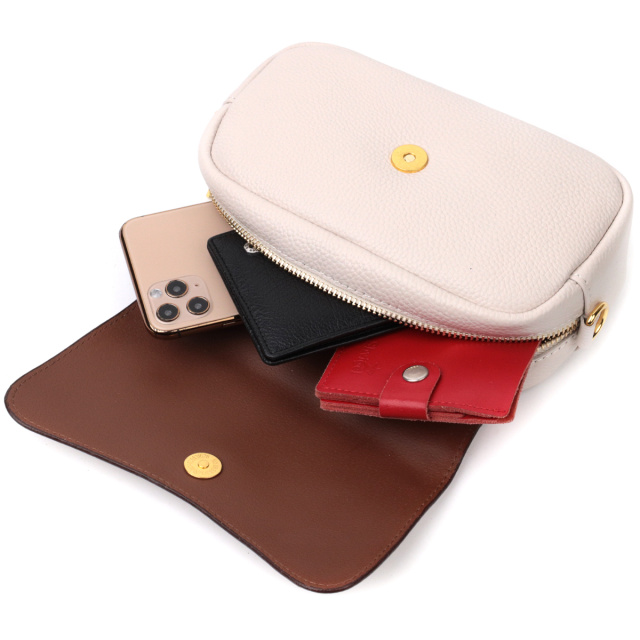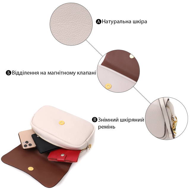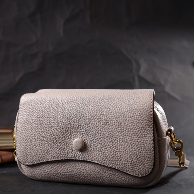 Уникальная женская сумка с фигурным клапаном из натуральной кожи. Аксессуар состоит из одного основного отделения, потайного кармана на молнии и кармана открытого типа. Носить сумку можно на плече и через плечо, для этого имеется съемный кожаный ремень. В изделии использована качественная фурнитура цвета желтого золота. Кожаная сумка - лучший подарок для любой девушки.