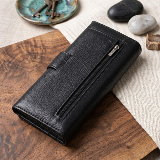 Женский кожаный кошелек — практичный и вместительный аксессуар для повседневного использования. Модель сочетает в себе аккуратный внешний вид, удобный вертикальный формат и продуманную организацию внутреннего пространства, поэтому хорошо подходит для хранения купюр, карточек, монет и других важных мелочей.