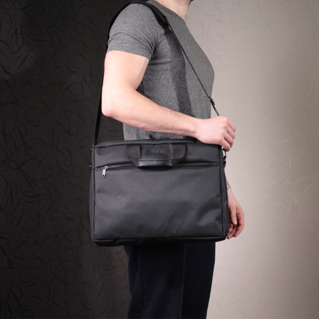 Изделие выполнено из качественного полиэстера черного цвета. Материал отличается прочностью и хорошо подходит для активного повседневного использования. Уплотненные стенки помогают лучше сохранять форму сумки и обеспечивают дополнительный комфорт при переноске ноутбука и документов.