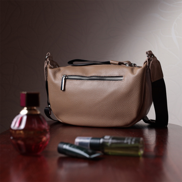 Красивая женская сумка на плечо из натуральной кожи, которая очень хорошо носится и не теряет свой первоначальный вид со временем. Аксессуар состоит из основного отделения, потайного кармана на молнии и кармана открытого типа, а также кармана на молнии снаружи. Носить сумку удобно через плечо. В аксессуаре использована качественная фурнитура цвета серебра. Отличный вариант сумки на каждый день.
