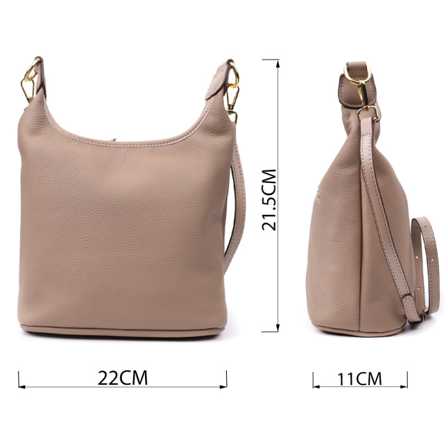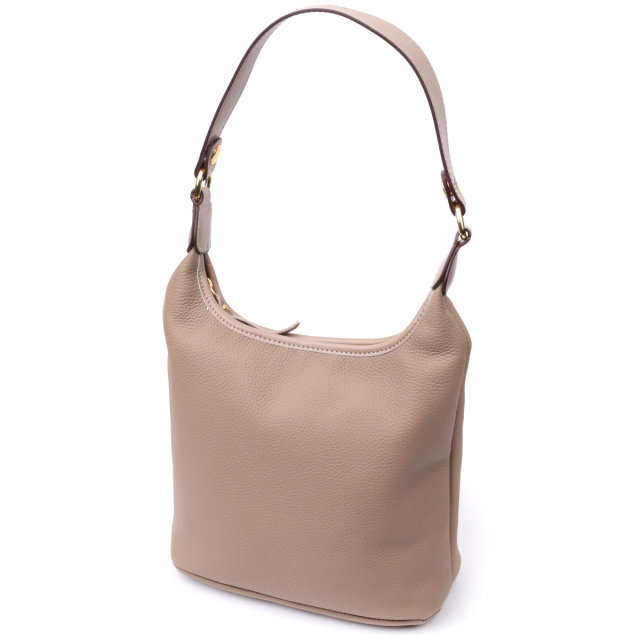 Деловая женская сумка среднего размера из натуральной качественной кожи. Аксессуар состоит из основного отделения, которое закрывается на молнию, потайного кармана на молнии и кармана открытого типа внутри, а также кармана на молнии снаружи на тыльной стороне. Носить сумку можно в руке и на плече, для этого имеется съемный кожаный ремень. В аксессуаре использована качественная фурнитура цвета золота.