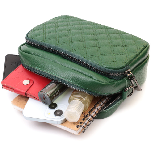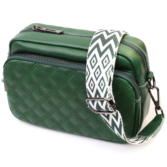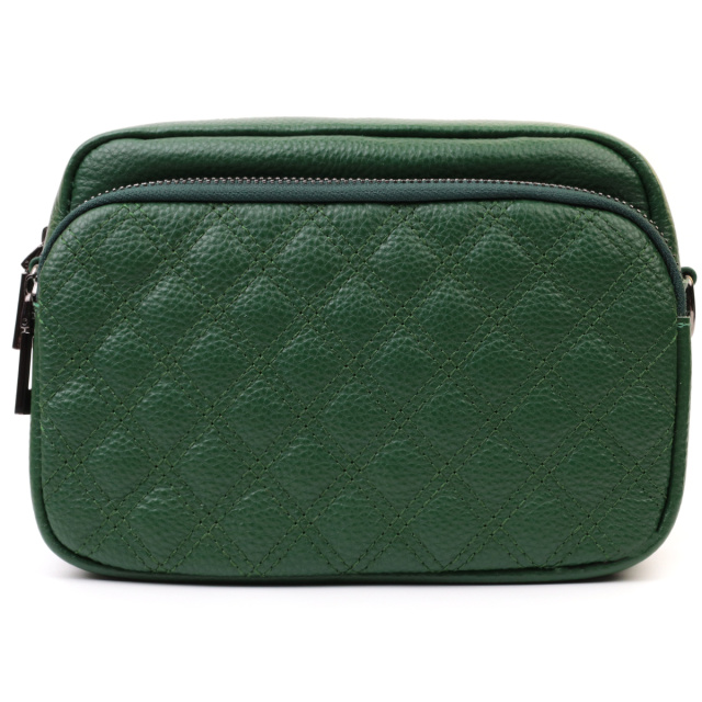 Красивая сумка в необычном цвете для женщин из натуральной кожи. Сумка прошита на лицевой стороне трендовыми ромбами, что придает аксессуару стиля. Носить сумку можно на плече и через плечо, также можно носить как клатч под рукой, для этого можно снять текстильный ремешок.