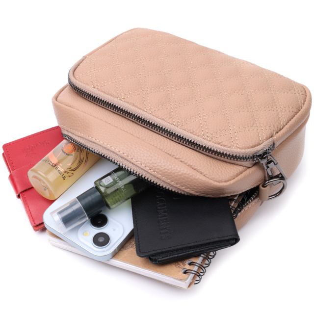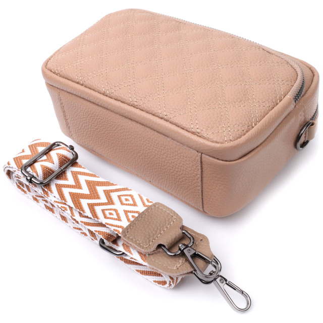 Интересная сумка в летнем цвете для женщин из натуральной кожи. Сумка прошита на лицевой стороне трендовыми ромбами, что придает аксессуару стиля. Носить сумку можно на плече и через плечо, также можно носить как клатч под рукой, для этого можно снять текстильный ремешок.
