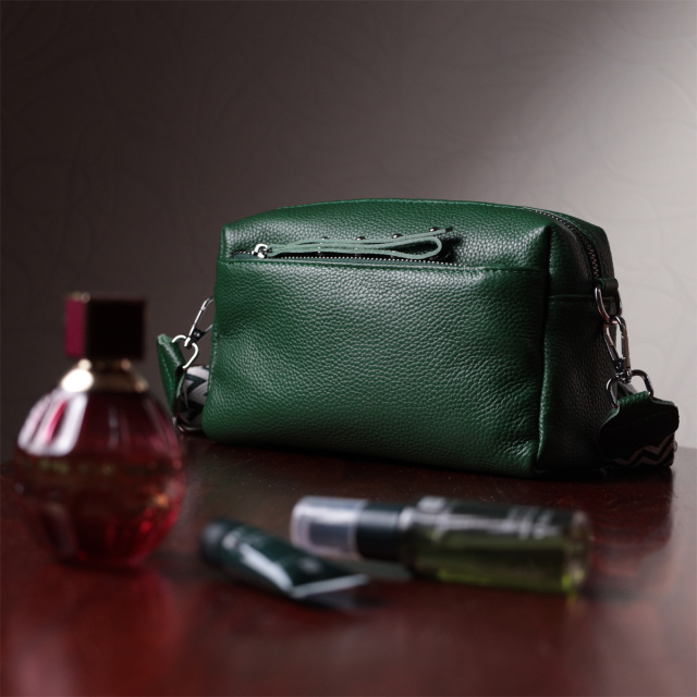 Стильная женская идеальная по размеру сумка из натуральной кожи. Аксессуар состоит из основного отделения, что закрывается на молнию, кармана на молнии и кармана открытого типа внутри, двух карманов на молниях снаружи, на тыльной и лицевой стороне. Носить сумку можно на плече и через плечо, для этого имеется съемный текстильный ремень.