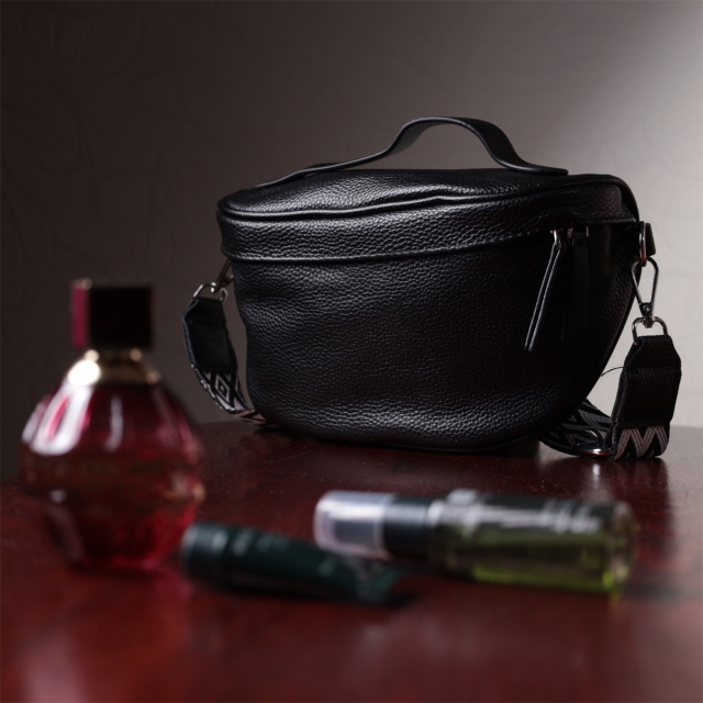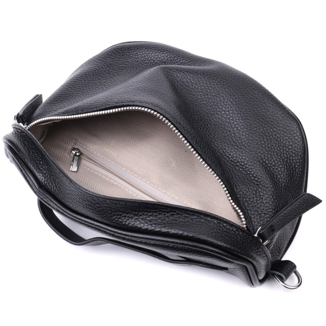 Модная в этом сезоне сумка через плечо из натуральной кожи. Аксессуар состоит из основного отделения, что закрывается на молнию, кармана на молнии и кармана открытого типа внутри. Носить сумку можно на плече, через плечо, а также в руках для этого имеется съемный текстильный ремень и кожаная ручка.