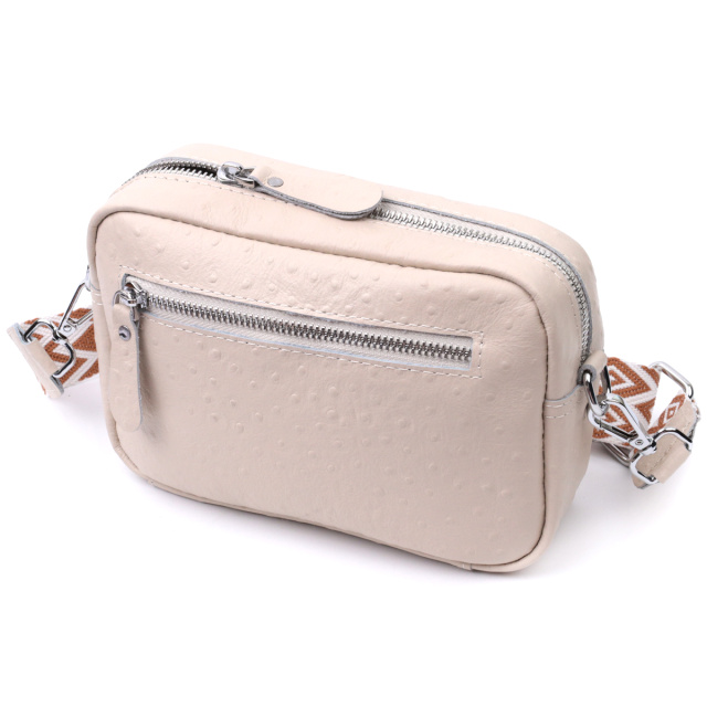 Женская сумка на каждый день из натуральной кожи. Аксессуар состоит из основного отделения, что закрывается на молнию, кармана на молнии и кармана открытого типа внутри и двух карманов снаружи, на лицевой и тыльной стороне. Носить сумку можно на плече и через плечо для этого имеется съемный текстильный ремень.
