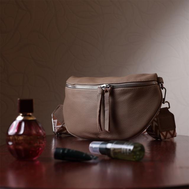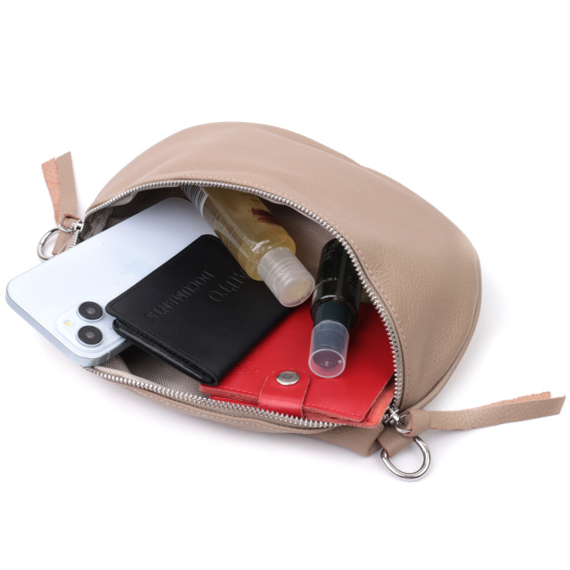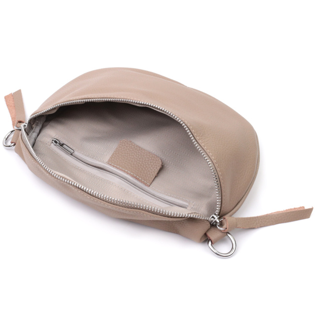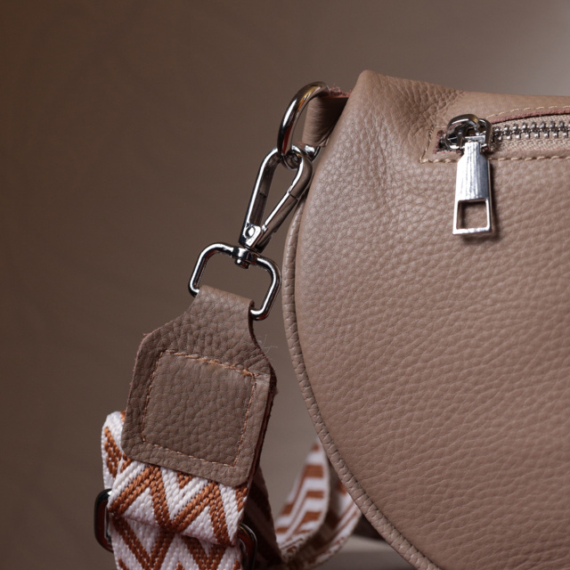 Стильная сумка через плечо из натуральной кожи флотар, которая неприхотлива в уходе и долго носится. Аксессуар состоит из основного отделения, кармана на молнии внутри, а также съемного мини кошелька. Носить сумку можно на плече и через плечо, для этого имеется текстильный съемный ремень. В аксессуаре использована качественная фурнитура цвета серебра.