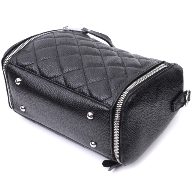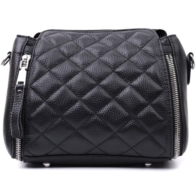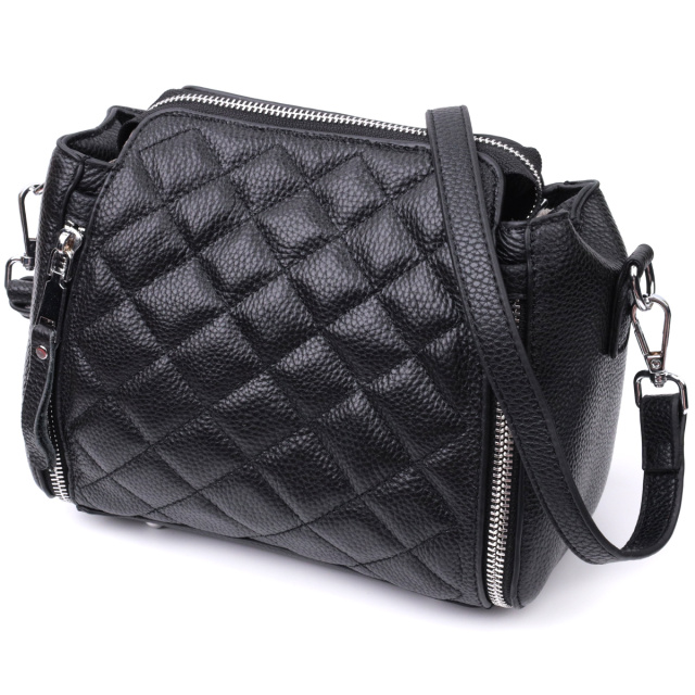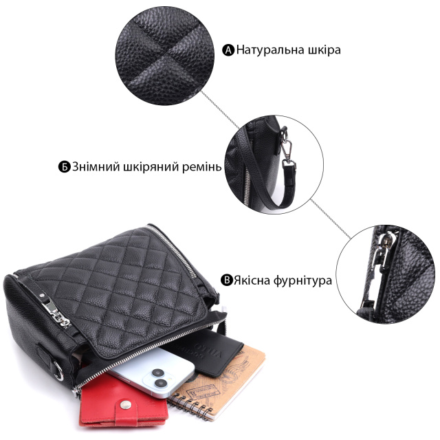 Трендовая сумка для женщин в ромбы из натуральной кожи Vintage 22667 Черная