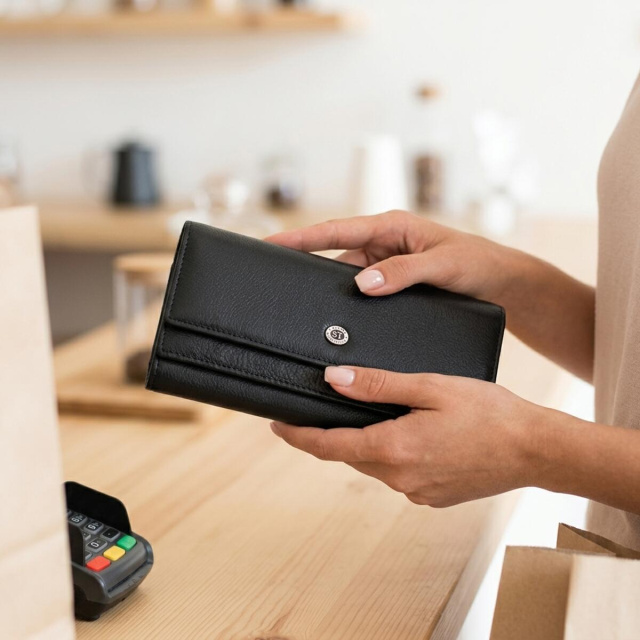 Женский кожаный кошелек — практичный и вместительный аксессуар для повседневного использования. Модель сочетает в себе аккуратный внешний вид, удобный формат и продуманную организацию внутреннего пространства, поэтому хорошо подходит для хранения купюр, карточек, монет, документов и других важных мелочей.