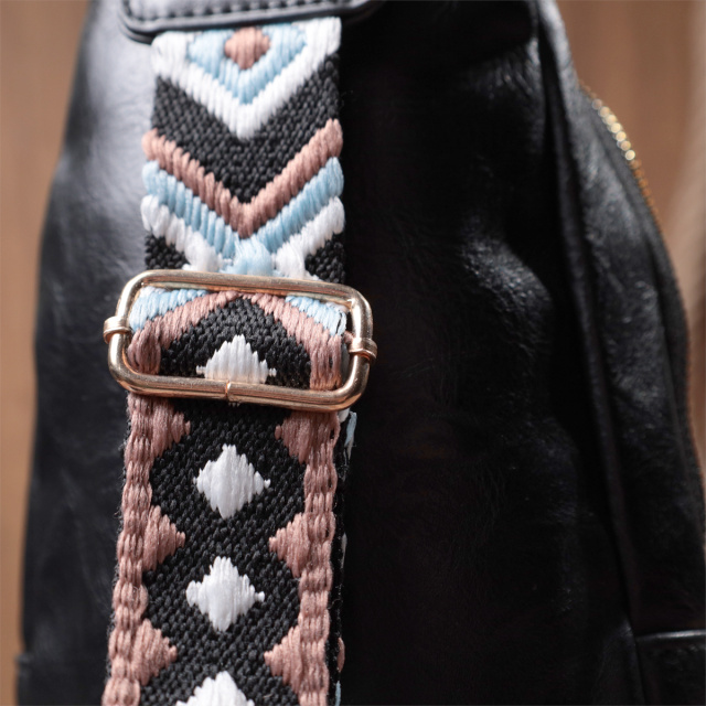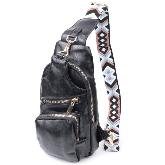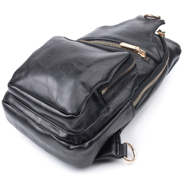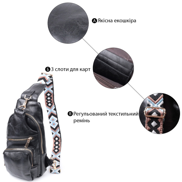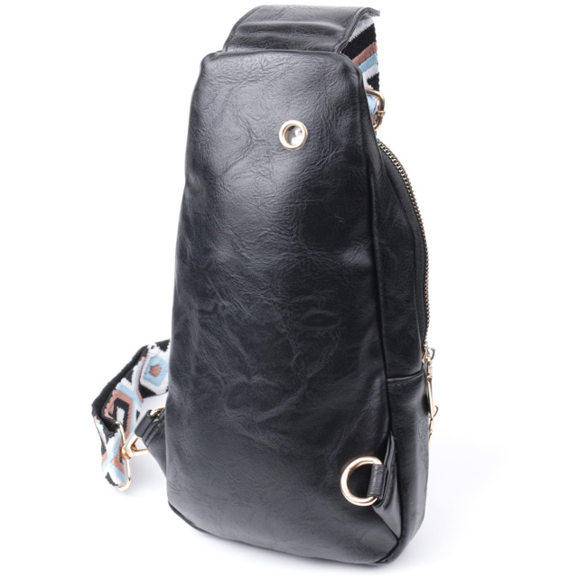 Экокожа - высококачественная альтернатива натуральному материалу, которая очень устойчива к трению, к низким температурам, отлично носится в отличии от других искусственных материалов, а также имеет гипоаллергенный состав в отличии от натуральной кожи. Предлагаем Вашему вниманию удобную слинг сумку из экокожи в классическом черном цвете. Данная модель состоит из одного основного отделения которое закрывается на молнию и в котором находится карман на молнии и три кармана для кредитных карт, а также трех карманов снаружи и одного отверстия для кабеля или наушников, что очень удобно в современной мире. Основной фишкой модели является удобный регулируемый плечевой ремешок в этническом стиле, что очень модно уже несколько сезонов.