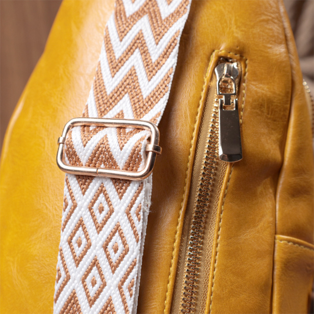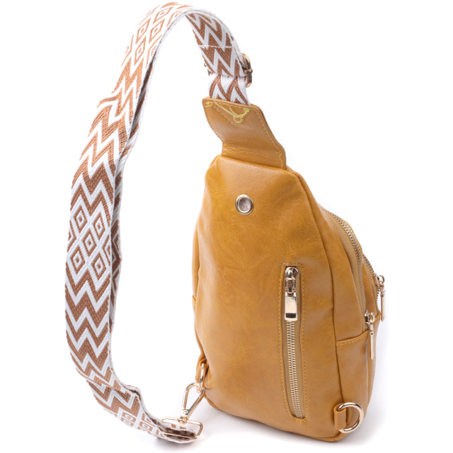 Функциональня слинг сумка для женщин из гладкой экокожи. Данная модель состоит из одного основного отделения которое закрывается на молнию и в котором находится карман на молнии и три кармана для кредитных карт внутри, а также трех карманов снаружи и одного отверстия для кабеля или наушников, что очень удобно в современной мире. Акцентом данной модели является удобный регулируемый плечевой ремешок в этническом стиле, что очень модно уже несколько сезонов. Экокожа - высококачественная альтернатива натуральному материалу, которая очень устойчива к трению, к низким температурам, отлично носится в отличии от других искусственных материалов, а также имеет гипоаллергенный состав в отличии от натуральной кожи.